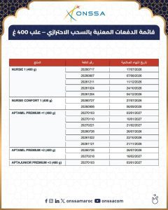كما دعت “أونسا” الآباء إلى عدم استعمال الدفعات التي تحمل أرقاما تبدأ بـ 2026 أو 2027 كإجراء احترازي.