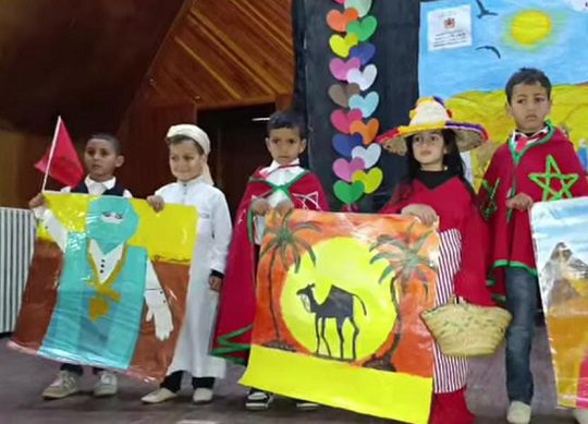 وقد ارتدى الأطفال أزياء تقليدية تجسد مكونات الثقافة المغربية، مؤدين أناشيد وطنية، ورقصات فولكلورية، ومشاهد مسرحية بسيطة ذات رسائل قوية حول الحب والانتماء للوطن.
