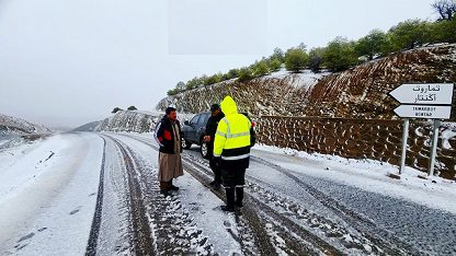 قام عامل إقليم شيشاوة، بوعبيد الكراب، صباح يوم الأحد 28 دجنبر 2025، بزيارة تفقدية للدواوير التابعة لجماعتي روهالة وأفلايسن خصوصا الجبلية في سلسلة الأطلس الكبير والتي تعرف تساقطات ثلجية كثيفة، ذلك لمعاينة حجم التساقطات الثلجية التي كثيرا ما تأثر على المسالك والطرق والمباني السكنية التقليدية بمرتفعات الأطلس، وتأتي هذه الزيارة الميدانية التي نقلت جريدة “الألباب المغربية” صورا لها بشكل حصري للإستجابة السريعة لآثار الطقس البارد الذي تعرفه الجماعات الترابية الواقعة بجبال دائرتي إمنتانوت ومجاط مع ضمان انسياب حركة السير بتنسيق مع المديرية الإقليمية للتجهيز وكذا بمشاركة كاسحات الثلوج التابعة للجماعات الترابية وطمأنة المواطنين القاطنين في هذه المناطق.
