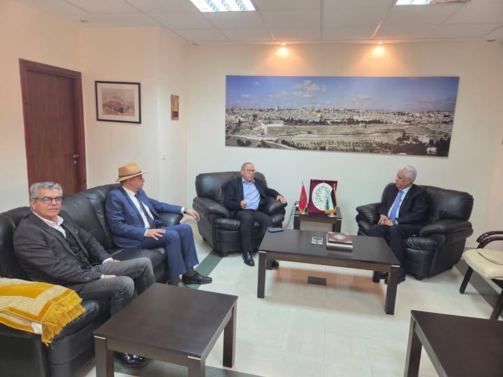 استقبل معالي سفير دولة فلسطين بالرباط، جمال الشوبكي، أمس الاثنين 23 فبراير 2026، وفدا عن المكتب التنفيذي للجمعية المغربية لمساندة الكفاح الفلسطيني، برئاسة عبد الحفيظ ولعلو، نائب الرئيس، ومحمد حيتوم، وأحمد عليوة، أعضاء المكتب التنفيذي، وذلك لتقديم واجب العزاء في وفاة السيدة ليلى شهيد.