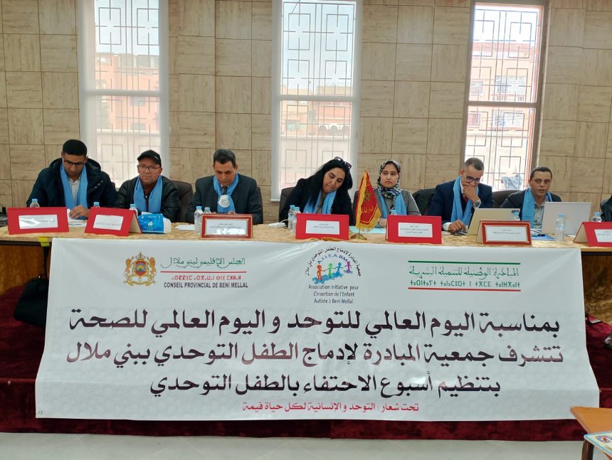 في مبادرة إنسانية تعكس تزايد الوعي المجتمعي بقضايا الإعاقة، احتضن المركز الاجتماعي المتعدد الاختصاصات القدس بمدينة بني ملال، بعد زوال أمس الخميس 9 أبريل 2026، لقاءً علمياً وتحسيسياً حول اضطراب التوحد، تحت شعار: “التوحد والإنسانية يداً في يد من أجل الإدماج المجتمعي”، وذلك بمبادرة من جمعية المبادرة لإدماج الطفل التوحدي، تخليداً لليوم العالمي للتوحد المتزامن مع اليوم العالمي للصحة.