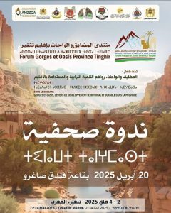 تحت شعار “المضايق والواحات: روافع للتنمية الترابية المستدامة بالإقليم”، نظم المجلس الإقليمي للسياحة لتنغير ندوة صحفية لتقديم برنامج منتدى المضايق والواحات، المقرر تنظيمه ما بين 2 إلى 4 ماي المقبل وذلك يوم الأحد 20 أبريل 2025 خصصت لمداخلة كل من رئيس المجلس اإقليمي للسياح محمد بنديدي وسكريتير اللجنة المنظمة مصطفى وردي حيث تم عرض كل ما يتعلق بهذا المنتدى الأول لمضايق وواحات إقليم تنغير والأهداف المتوخى تحقيقها من وراء تنظيمه وعرض البرنامج العام الخاص بهذا الحدث حيث صرح المتدخلان بأن المنتدى يأتي بدعم وإشراف من عمالة تنغير، وبشراكة مع عدة جماعات ترابية وبدعم من الوكالة الوطنية لتنمية مناطق الواحات وشجر الأركان وشركة معادن أميضر.