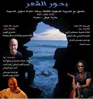 يوم السبت 30 غشت، وابتداء من الثامنة مساء، سيكون جمهور بحور الشعر على موعد مع لقاء “شاعر في المهجر”، والذي يستضيف الشاعر المحتفى به جمال بودومة، تليه أمسية شعرية بعنوان “الأطلال.. قراءات شعرية في مواقع أثرية”، يشارك فيها الشاعر فيصل الأمين البقالي والشاعرة زكية الحداد والشاعر أحمد فرج الروماني، بينما يختتم هذه التظاهرة عازف العود الفنان يونس الفخار. والشعراء المشاركون في هذه الدورة هم من أبناء مدينة طنجة، والذين لم يسبق لهم أن شاركوا في فعاليات دار الشعر بتطوان، التي تقام في مختلف المدن المغربية، بما يضمن حضور سائر الشعراء المغاربة في برامج الدار، باختلاف تجاربهم وألسنتهم ومرجعياتهم الشعرية.