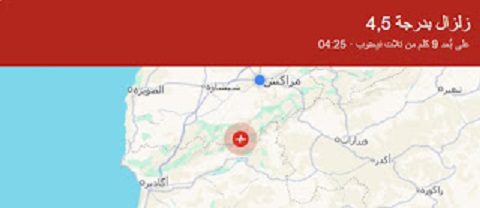 علمت جريدة “الألباب المغربية” من مصادر لها من إقليم الحوز، أن هزة أرضية بقوة 4.5 درجات على سلم ريشتر سجلت، فجر اليوم الأربعاء 3 شتنبر الجاري، على بعد 9 كيلومترات من جماعة ثلاث نيعقوب بإقليم الحوز.