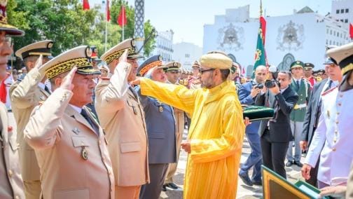 ترأس صاحب الجلالة الملك محمد السادس، القائد الأعلى ورئيس أركان الحرب العامة للقوات المسلحة الملكية، نصره الله، مرفوقا بصاحب السمو الملكي ولي العهد الأمير مولاي الحسن وصاحب السمو الملكي الأمير مولاي رشيد، بعد ظهر اليوم الخميس 31 يوليوز الجاري، بساحة المشور بالقصر الملكي بتطوان، حفل مراسم أداء القسم من طرف الضباط المتخرجين من مختلف المدارس والمعاهد العسكرية وشبه العسكرية وكذا ضباط الصف الذين تمت ترقيتهم إلى رتبة ضابط، وذلك بمناسبة الاحتفال بالذكرى الـ 26 لتربع صاحب الجلالة على عرش أسلافه المنعمين.