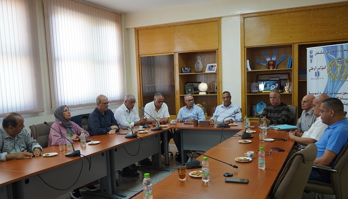 عقدت الهيئات النقابية والمهنية لقطاع الصحافة والنشر الرافضة لمشروع قانون 25/26 بإعادة تنظيم المجلس الوطني للصحافة، لقاء، بعد زوال الخميس 2 أكتوبر 2025، مع قيادة الاتحاد المغربي للشغل، برئاسة الأمين العام الميلودي المخارق بالمقر المركزي للمنظمة بالدارالبيضاء، شارك فيه وفد عن الأمانة الوطنية ورئيس الفريق البرلماني للاتحاد المغربي للشغل بمجلس المستشارين، وحضر عن الهيئات النقابية والمهنية للقطاع، وفد من كل هيئة يتقدمه رؤساؤها وكتابها العامون، وخصصت الجلسة لوضع الأمانة الوطنية للاتحاد في قلب التجاوزات والتراجعات والترامي الفاضح للحكومة على مؤسسة المجلس الوطني للصحافة من خلال مشروع القانون 25 ــ 026 الذي سن مقتضيات تمنح الهيمنة لفئة على حساب أخرى، وتكرس التشتيت والإقصاء لفئات عريضة من التنظيمات المهنية والنقابية، وتلغي مبدأ الانتخاب عن فئة الناشرين وتعوضه بمبدأ التعيين، وتضع رقم المعاملات والرأسمال معيارا للتمثيلية.