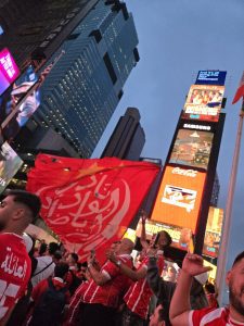 نظم فصيل “الوينرز 2005″، المساند الرسمي لنادي الوداد الرياضي، تجمعا جماهيريا حاشدا مساء أمس بساحة “تايمز سكوير” الشهيرة وسط مدينة نيويورك الأمريكية، وذلك دعما للفريق الأحمر قبيل مباراته المرتقبة أمام مانشستر سيتي الإنجليزي.