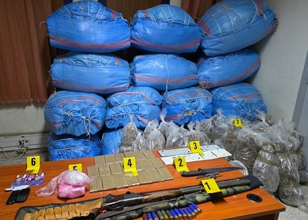 أما العملية الثانية فقد تم تنفيذها بالمنطقة القروية “كنان زمامرة” بضواحي قلعة السراغنة، حيث مكنت من توقيف سيارة نفعية على متنها شخصان يشكل أحدهما موضوع عدة مذكرات بحث على الصعيد الوطني، قبل العثور بحوزتهما على 476 كيلوغراما من مخدر الكيف و 105 كيلوغراما من التبغ المهرب، فضلا عن 700 غراما من الكوكايين وكيلوغرام و700 غراما من مخدر الشيرا، وكذا بندقية صيد غير مرخصة و13 خرطوشة.