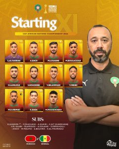كشف الناخب الوطني طارق السكتيوي، عن التشكيلة الرسمية التي سيخوض بها المنتخب المغربي المحلي المباراة اليوم أمام منتخب السنغال ضمن منافسات نصف نهائي الشان.