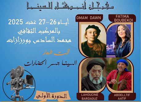 تحت شعار السينما جسر الحضارات، يحتضن المركب الثقافي محمد السادس بمدينة ورزازات يومي 26 و27 غشت 2025، فعاليات الدورة الأولى لمهرجان أنموكار للسينما.
