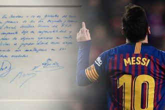 أول عقد لميسي مع برشلونة يعرض للبيع في مزاد علني كتب على منديل