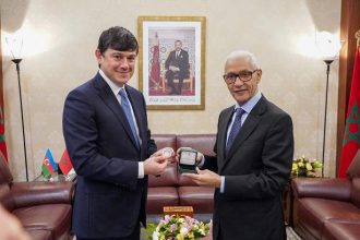 الطالبي العلمي يجري مباحثات مع رئيس لجنة الدولة للعمل مع الجالية الأذربيجانية